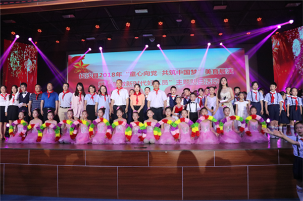 为深入学习贯彻党的十九大精神,培育和践行社会主义核心价值观,深入开展“童心向党”主题教育活动,让全县广大少年儿童度过一个快乐而有意义的“六一”儿童节,5月30日,由长沙县文明办、共青团长沙县委、长沙县教育局主办的“童心向党,共筑中国梦”美育展演暨“争做新时代好队员”主题队日活动,在长沙县松雅湖小学举行。团市委挂职副书记何平、县教育局党委副书记陈晓、县文明办主任王宏伟、团县委副书记陈展出席活动,活动现场共吸引学生及家长约450人参加。