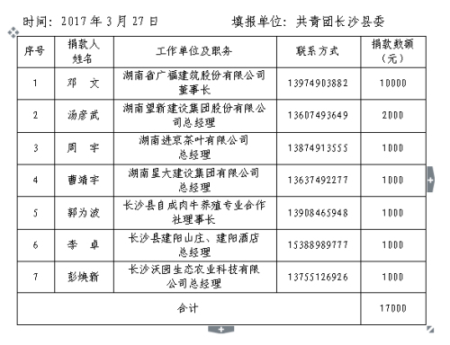 长沙县青企协参与“青”字号品牌精准扶贫工作捐款明细