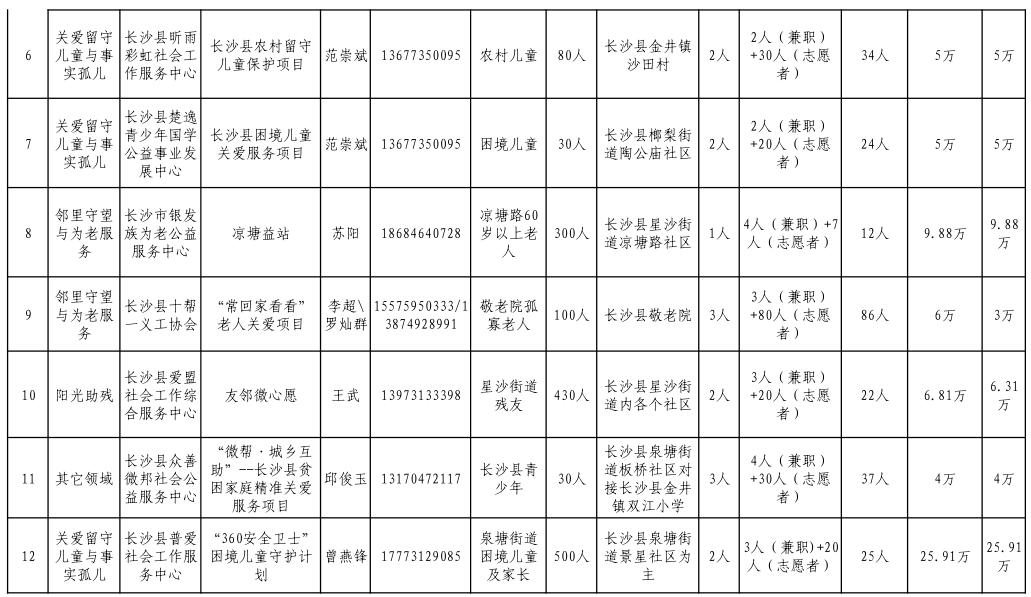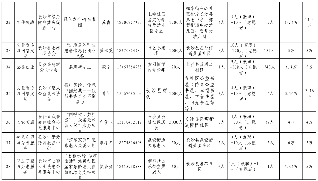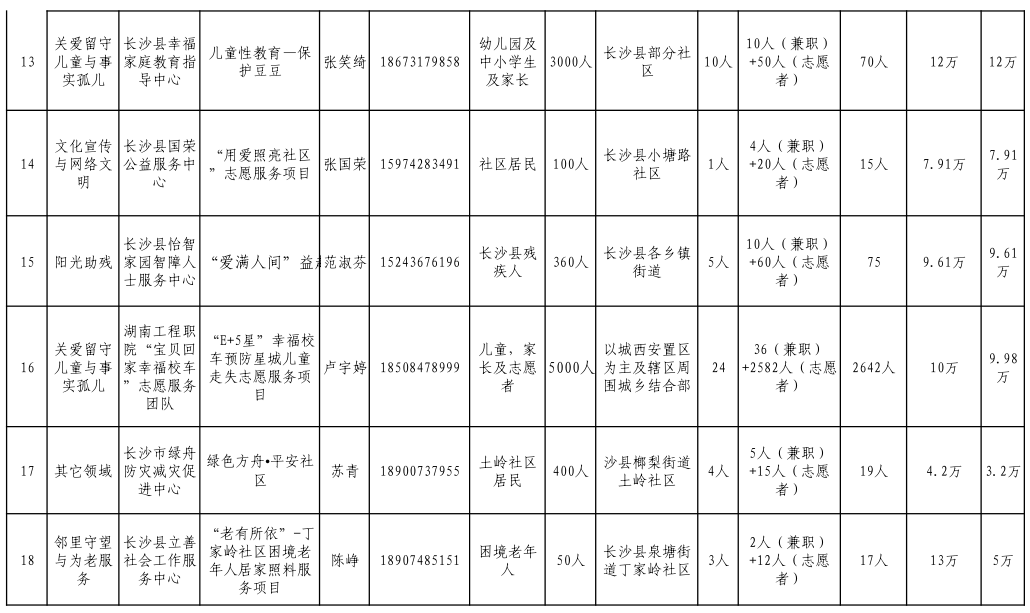 长沙县第三届“践行雷锋精神·共建文明家园”公益项目展评活动初赛入围名单公示表